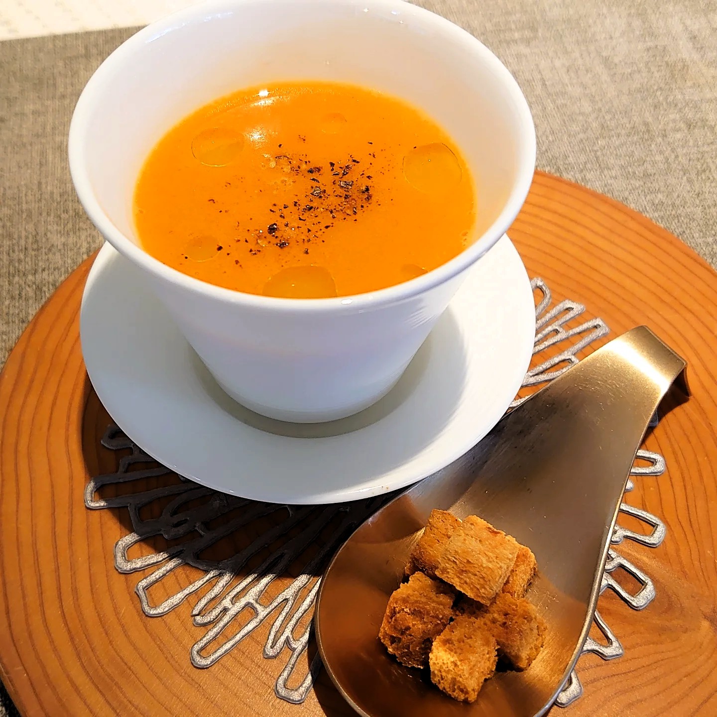 季節野菜のポタージュをビスクスープにご変更可能です!